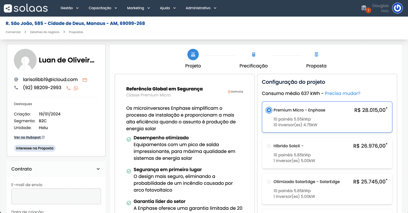Ao centralizar geração de leads, crédito integrado, dimensionamento automático e CRM em um só lugar, a Solass acelera o seu ciclo de vendas e amplia o seu alcance.